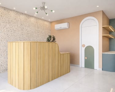 Este projeto foi desenvolvido com o objetivo de criar um ambiente acolhedor, lúdico e funcional, pensado especialmente para o atendimento infantil. A proposta incorpora elementos da natureza, cores em tons suaves e texturas variadas, promovendo uma atmosfera tranquila, afetiva e convidativa — tanto para as crianças quanto para seus acompanhantes.